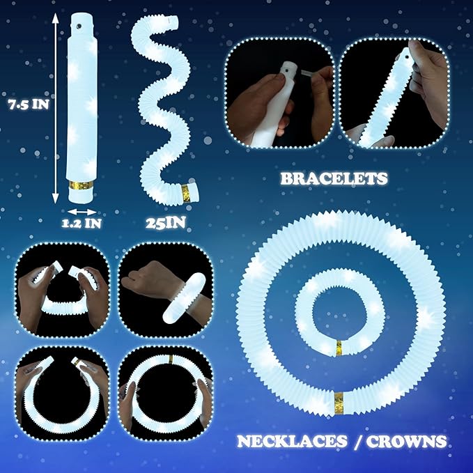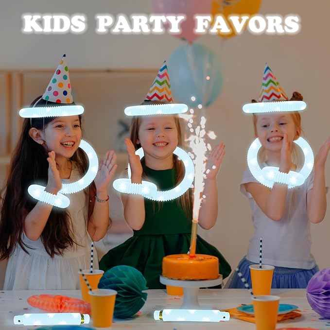 - Light-up Pop Tubes – Stretch, twist, and retract the tubes to create fun crackling sounds, bringing laughter to both kids and adults. These interactive tubes add energy to parties and gatherings.