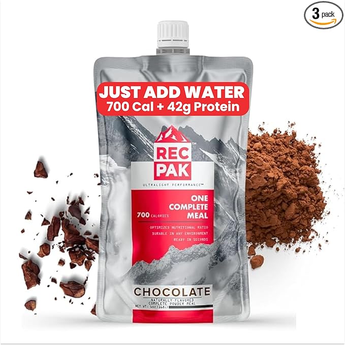 RecPak Performance Ultralight Instant Meals For Your Next Adventure | 700 Cal 42g Protein I Chocolate (3-Pack)
