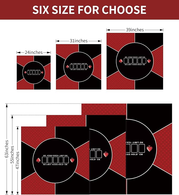 nuveti 24/31/39/47/55/63 inch Square Foldable 6-Player Texas Poker Card Tabletop Layout Portable Anti-Slip Rubber Board Game Mat Texas Hold'em Poker Mat for Family Game, Casino, Party