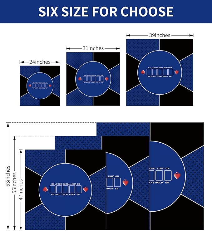 nuveti 24/31/39/47/55/63 inch Square Foldable 6-Player Texas Poker Card Tabletop Layout Portable Anti-Slip Rubber Board Game Mat Texas Hold'em Poker Mat for Family Game, Casino, Party