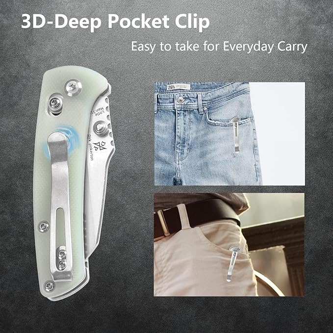 - Smooth Deployment : Ceramic ball bearing offers smooth flip opening(Longer service life of ceramic balls); Axis Lock and thumb stud opener for one-handed use, Multiple adjustment holes can be adjusted according to comfort.