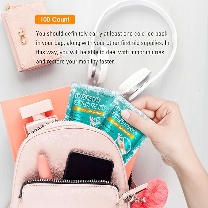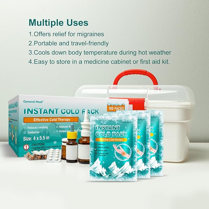 General Medi Instant Ice Cold Pack (4”x 5.5”) – 100 Packs Disposable Cold Therapy Ice Packs for Pain Relief, Swelling, Inflammation, Sprains, Toothache – for Athletes & Outdoor Activities