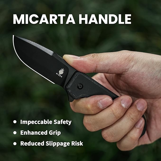 - 【Lightweight Design】Folding knife is paired with an exceptional Micarta handle, providing you with a sharp and refined tool. The lightweight design makes the Kizer knife weigh only 2.26 OZ, ensuring increased grip and comfort without adding unnecessary weight.