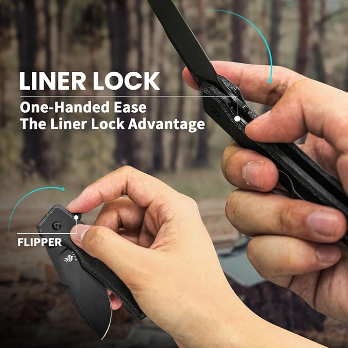 - 【Ergonomic Design】The combination of Flipper and Liner Lock enables convenient one-handed opening and reliable blade security. The Flipper allows easy deployment, while the Liner Lock ensures a secure hold, preventing accidental folding. This design enhances maneuverability, comfort, and safety.