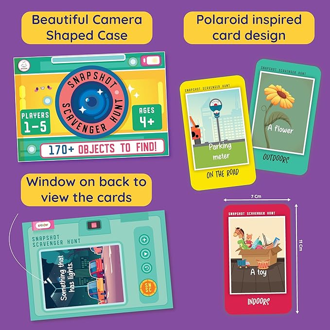 Snapshot Scavenger Hunt for Kids Ages 4-8, Indoor Outdoor Game. 170+ Objects & Prompts. Find and Seek Scavenger Hunt Card Game. Outdoor Activities and Scavenger Hunt for car Ride