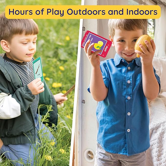- 170+ INDOOR OUTDOOR AND TRAVEL PROMPTS: With newly designed scavenger hunt cards, grouped into 3 decks (indoor, outdoor and on the go), treasure hunting for kids expands to exciting challenges; Each set provides fun indoor & outdoor activities for kids . Comes with 86 double sided cards to give 172 unique things to find!