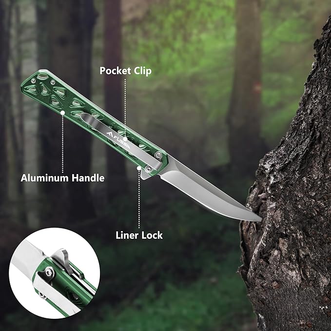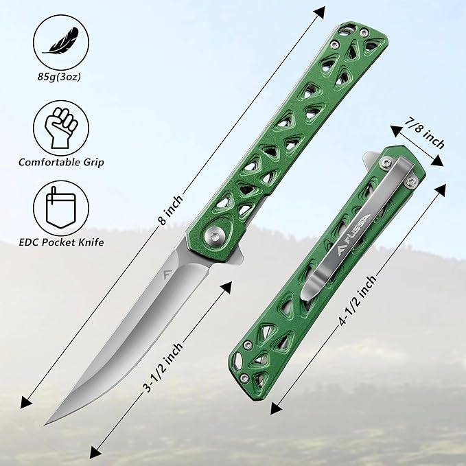 FLISSA Folding Knife, 4.5" Folding Pocket Knife, Hollow-out Design Handle, Tactical Pocket Knife for Hunting, Survival, EDC, Camping and Outdoor Activities, Green