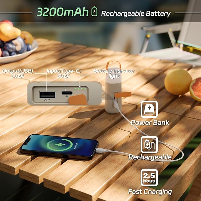 - High-capacity Battery: This rechargeable camping lantern built-in 3200mAh battery, can not only provides up to 10-350 hours of night light or 9-200 hours of flashilight runtime, but also serves as a portable power bank for charging of your mobile devices when in power outage or emergency. This battery powered lantern can be fully charged in just 2.5 hours using 5V2A TypeC fast charger.