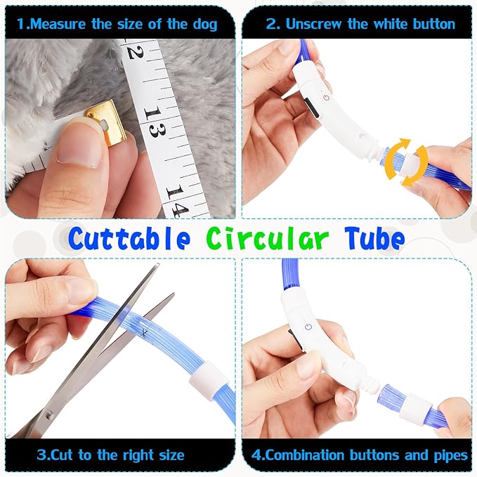 - Adjustable size: the total length of light up dog collar is approx. 27.5 inches, and you could easily tailor the length to the size of the dog's neck like spaniel, labrador, hound, German shepherd, collie and more