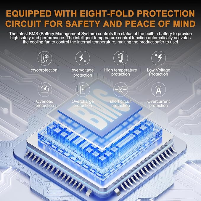 - 🌞[Uses high-quality LiFePO4 battery] The built-in battery uses a lithium iron phosphate battery (LiFePO4) that lasts 15 years with over 3500 charge/discharge cycles. It lasts seven times longer than conventional batteries and costs less. It also has a battery management system (BMS) and control unit (MCU) to manage battery cell voltage and temperature.
