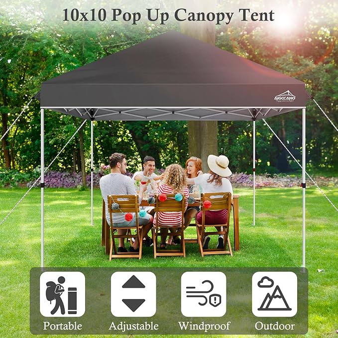 Pop up Canopy Tent,10x10 Instant Outdoor Canopy for Parties with Wheeled Bag(Grey)