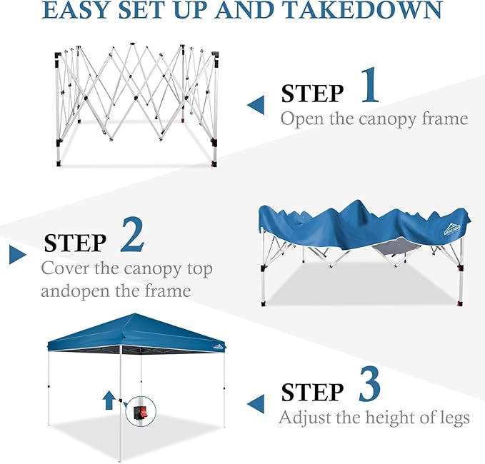 - EASY TO INSTALL:Open the frame and put the fabric on it, and then adjust the height to shade. There are three adjustable heights, you can adjust the height
