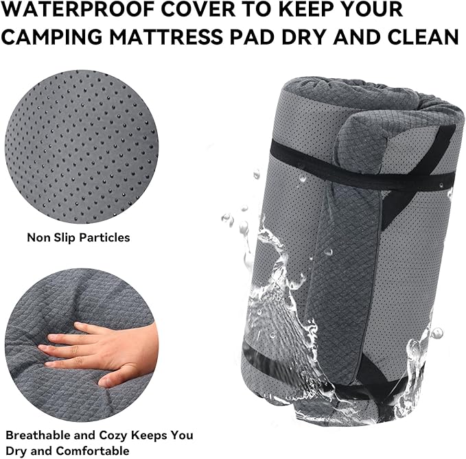 - 【Non Slip】The portable mattress pad comes with amazing straps to attach the mattress to your camping bed.The straps will ensure the mattress remains in place and doesn't move.The rubber dots on the bottom fit securely on the massage bed and do not shift easily, maintaining a fixed and comfortable position.