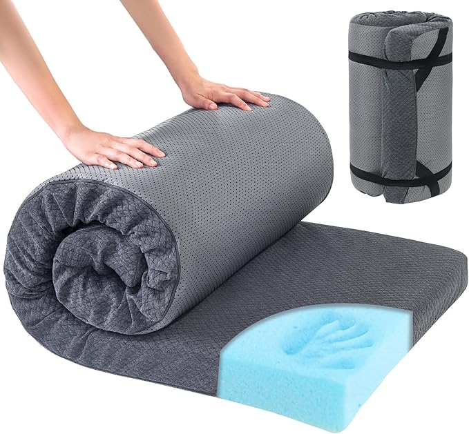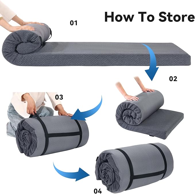 HOMBYS Memory Foam Camping Mattress Pad,Portable Sleeping Pad for Adult,Waterproof Cot Mattress,Roll Up Floor Mattress,Foldable Backpacking Travel Bed for Hiking,Guest Bed