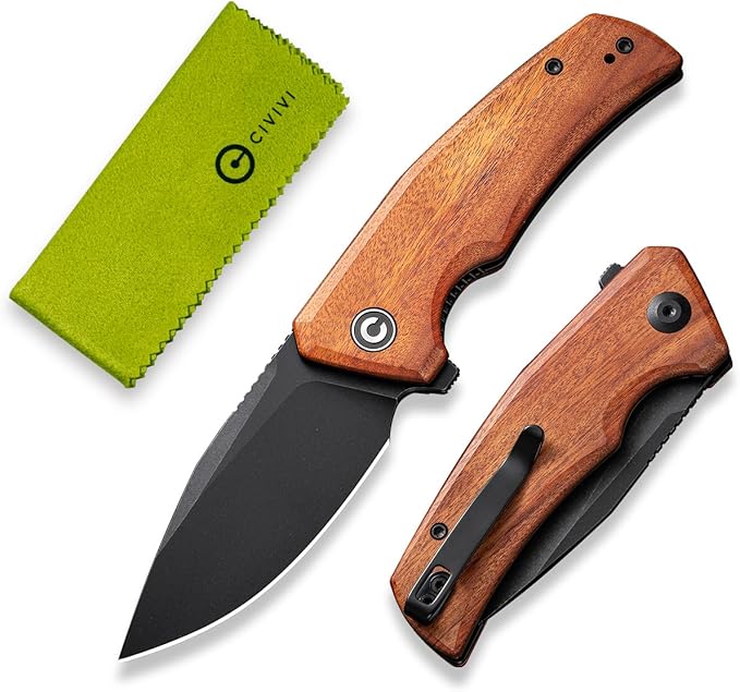 CIVIVI Pocket Knife for EDC, Regulatron Folding Knife for Men with Flipper Opener, Liner Lock, 2.98" Nitro-V Blade Wood Handle for Camping, Hunting C23006-3
