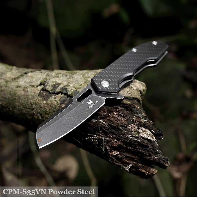 Folding Pocket Knife - 3.54'' CPM S35VN Black Steel Blade, Carbon Fiber Ergonomic Handle - Camping Outdoor Self-Defense & Protection EDC Knife, Men & Women Best Gifts