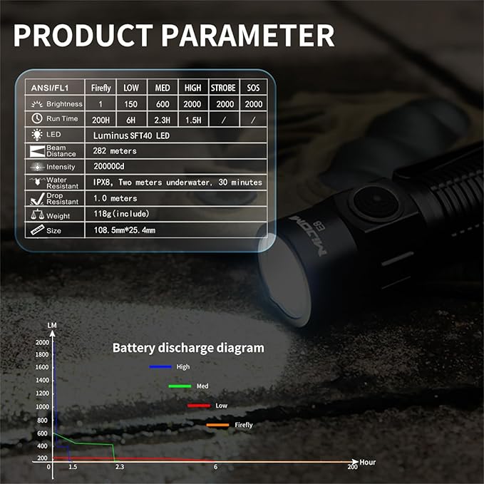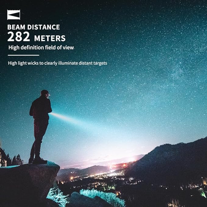 - 【Small Powerful Flashlight】Super bright flashlight provides high 2000 lumens and the maximum beam length of up to 925ft (282 meters). Ideal for daily use, home, outdoor, emergencies, camping, hiking, reading, car repair.