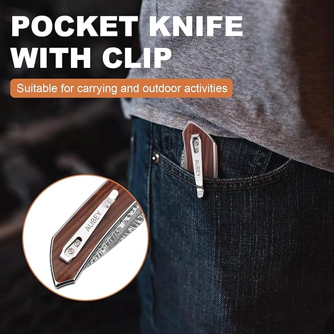- MULTI PURPOSE FOLDING KNIFE: The AUBEY pocket knife easy to use and can be used outdoors for hunting, fishing, camping, tactical, survival, hiking, etc. This folding knife is the perfect gift for men, suitable for Christmas, Valentine's Day, Anniversary, Thanksgiving, Father's Day, Teacher's Day and more
