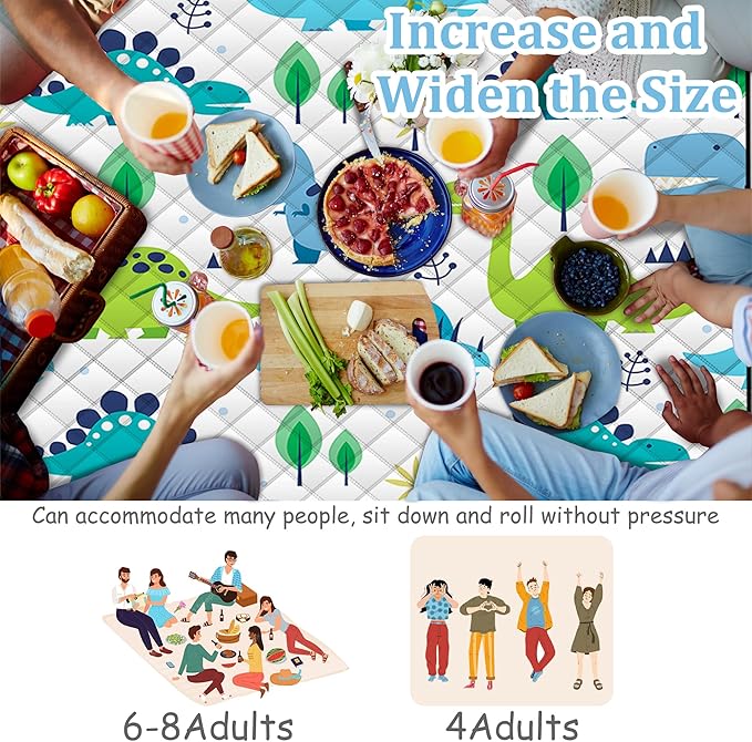 Extra Large Picnic Blanket Waterproof,80"x 80"Foldable Machine Washable Beach Blanket,Outdoor Blanket for 6-8 Adults,Picnic Mat Suitable for Indoor Crawling,Park Beach,Camping,Hiking,Travel(Dinosaur)