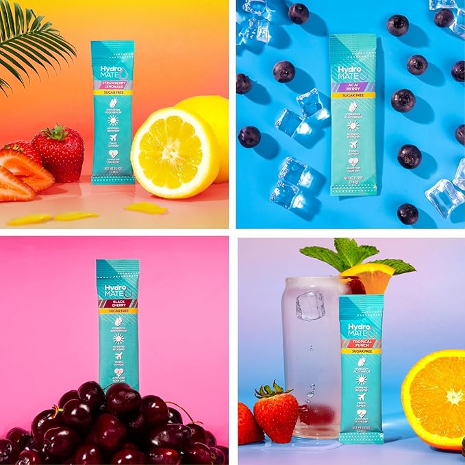 Electrolyte Powder Sugar-Free Hydration Packets Variety Pack HydroMATE 30 Sticks