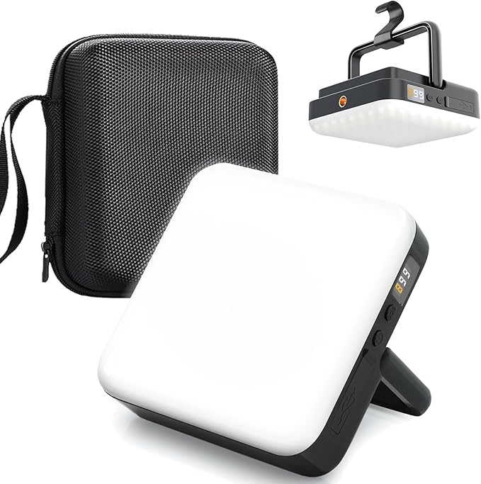 - RECHARGEABLE LED CAMPING LANTERN: LED camping light and lantern features a powerful 13500mAh battery, providing up to 4000LM 300 hours of illumination. It also serves as a power bank, for your phone, iPad, and other devices, as reliable light source for camping, outdoors, power outages, snowstorm and emergencies. The power display of battery level is a popular feature.