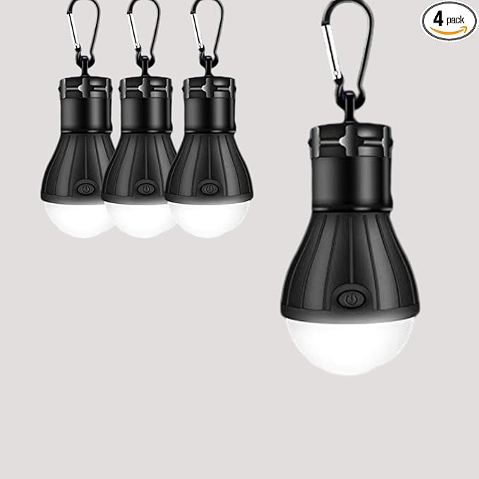 4 Packs LED Camping Lights ,Camping Gear, Camping Tent Lantern Tent Lights Portable Outdoor Waterproof Emergency Light Bulb,Super Bright, for Hiking, Party,Camping, Fishing, Power Failure (Black )