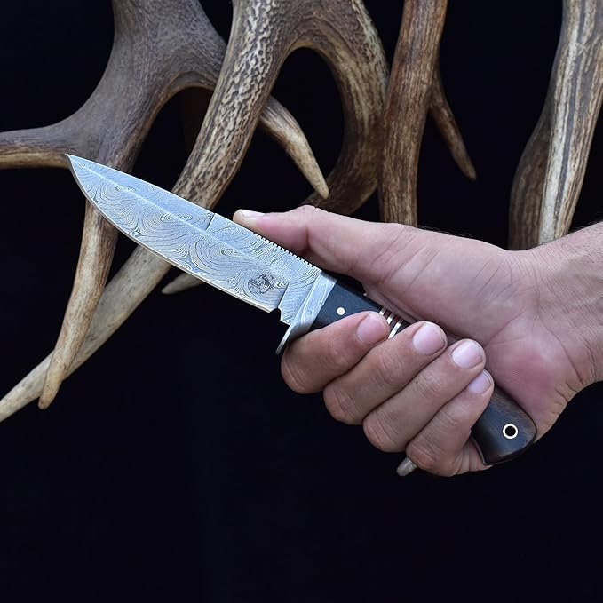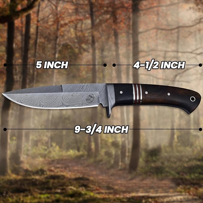 Knives Ranch Handmade 9-3/4" Hunting Knife - Full Tang Construction - Excellent Edge Retention - Rosewood Handle - Genuine Leather Sheath (3052-IRW)