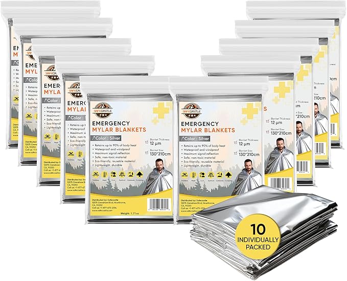 - SUPERIOR HEAT RETENTION:- SAFECASTLE Emergency Mylar Blankets Reflects and retains body heat to keep you warm in cold environments, helping to prevent hypothermia.