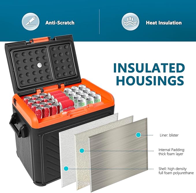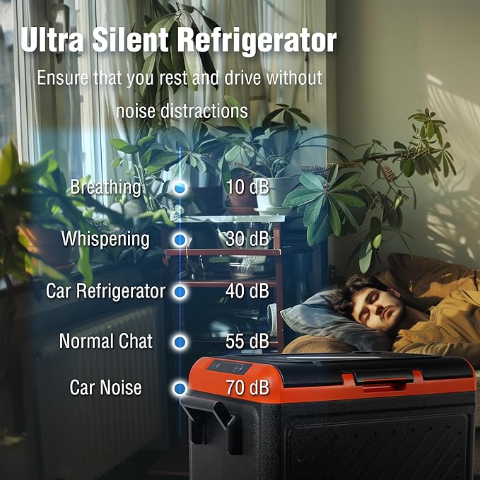 - LOW NOISE OPERATION: The low noise operation design of our car refrigerator ensures that noise disturbance is minimized while driving or resting in your vehicle. Keeping you focused and relaxed on the road