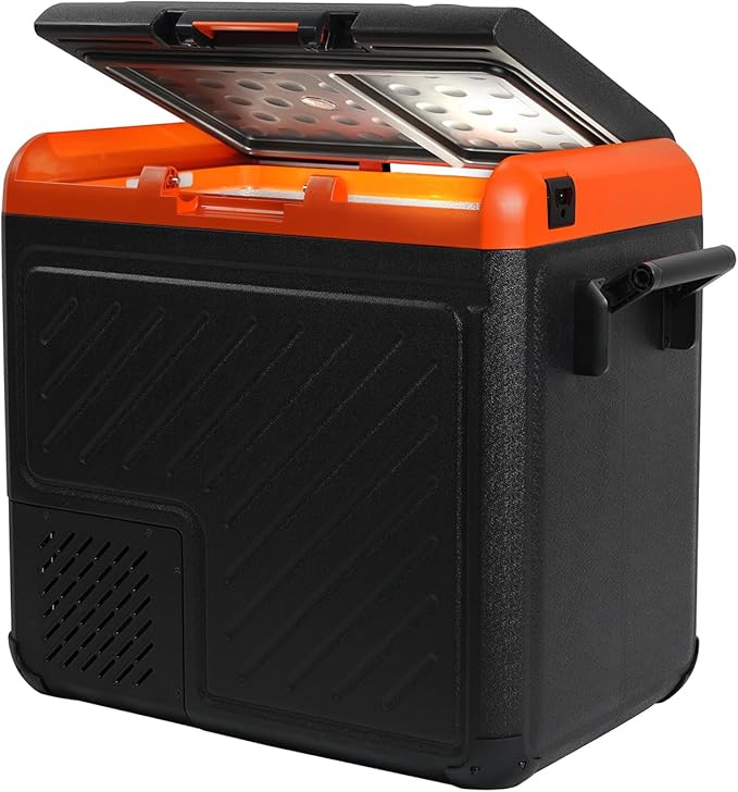 - STABLE SHOCKPROOF: The car refrigerator is made for the real road. Make sure that your portable refrigerator in your car remains stable when you are climbing a 40-degree grade. It is so tough that you can even carry this car refrigerator while driving off-road