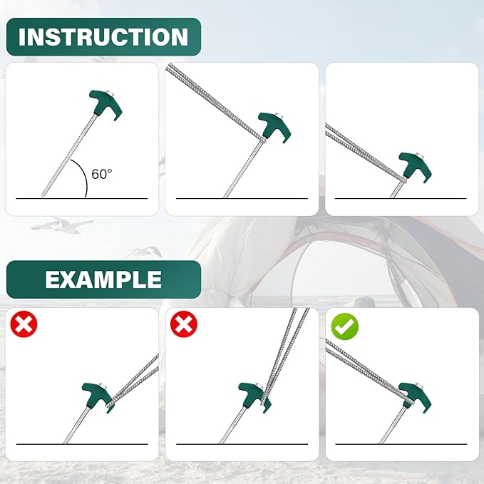 - Excellent Grip --- The threaded design of our heavy duty metal tent stakes ensures that they grip the ground firmly and tightly, preventing any unwanted movement or sliding. Allowing you to fully enjoy your outdoor adventure.