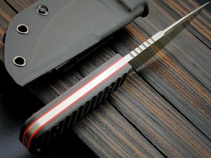 - HIGH-STRENGTH LIGHTWEIGHT KYDEX SHEATH: The sharp outdoor camping knife you are looking for. In order to ensure the use of safety, Kydex Sheath design is particularly tight, how shaken will not fallMultiple carrying methods, lanyard hole and Kydex sheath with universal clip can be adjusted horizontal and vertical for carrying angle also the removable & adjustable bar on the clip can be used on any size of the belt for easy portability.