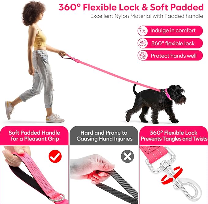 - 🐕【Ergonomic Comfort & Unhindered Movement】 Our leash's handle is cushioned with soft padding for a comfortable grip, ensuring your hands remain relaxed during walks. The 360° swivel clasp allows smooth, tangle-free movement, attaching securely to our LED dog collar and harness for a hassle-free experience.