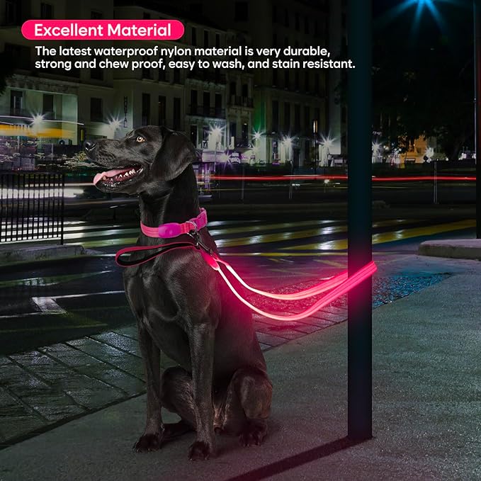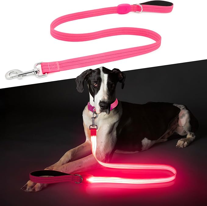 LED Dog Leash, Light Up Dog Leash 4 Ft USB Rechargeable Waterproof, Nylon Reflective Leashes with Padded Handle for Dogs Night Walking Light, Safety Glow in The Dark for Large Medium Pets (Pink)