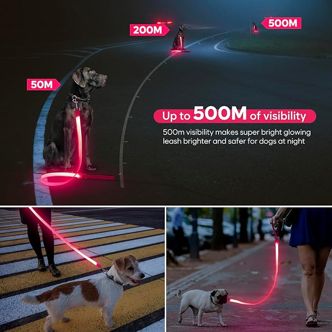 - 💡【Unmatched Visibility & Safety】Crafted with cutting-edge 2024 light guide strip technology, our LED dog leash ensures unparalleled visibility up to 500 feet, making nighttime walks safer for both you and your furry friend. Say goodbye to worries about low-light conditions; our leash keeps you both seen and secure.