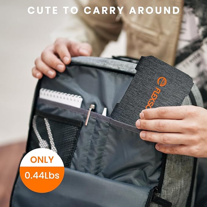 - Portable Solar Chargers:The unfold size is 19.4 x 6.3 x 0.5 inch and 3 fold design with a small size of 6.3 x 4.8 x 1 inch (when folded) which is similar size with iPad9 2021 version of 12.9 inches ,only0.44bls (200g) and comes with 2 Carabiners that can be easily squeezed into your backpack, also hung in backpacks and tents. FlexSolar 15W solar charger offers portability and simplicity for your travel,hiking, camping and backpacking.