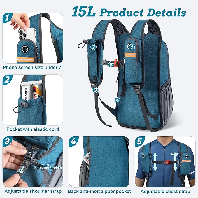 - Organized Multi-Pocket Design: With a capacity of 15L, this lightweight backpack for travel features several compartments, including a front elastic mesh pocket, a front zippered pocket, 2 water bottle holder, and a rear anti-theft zippered pocket, keeping your essentials organized and accessible.