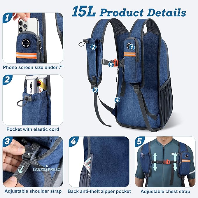 - Organized Multi-Pocket Design: With a capacity of 15L, this lightweight backpack for travel features several compartments, including a front elastic mesh pocket, a front zippered pocket, 2 water bottle holder, and a rear anti-theft zippered pocket, keeping your essentials organized and accessible.