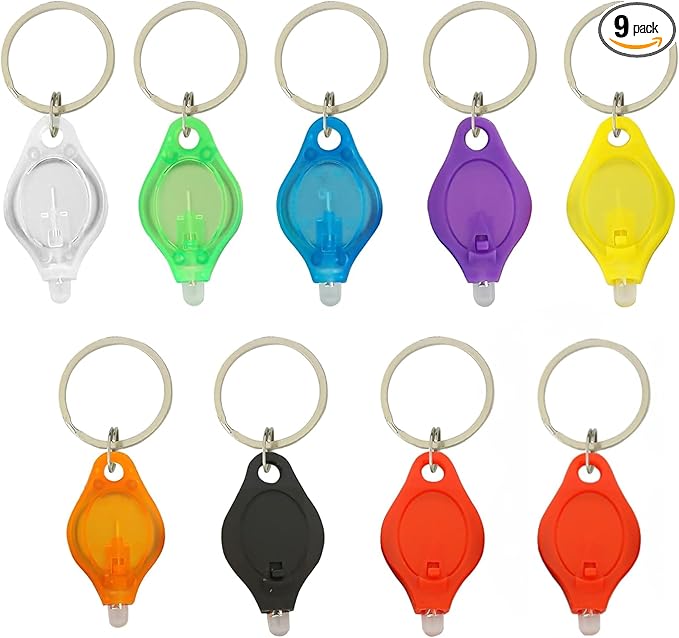 - ✅ Package: This set includes 9 small LED keychain flashlights in 8 colors (black, white, yellow, 2 x red, purple, green, blue, orange - as shown in the image). Each is sized at 1.6" x 0.87". Portable & lightweight for easy to carry every time!
