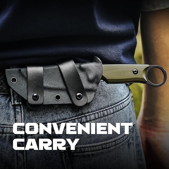 - Easy Portability: The fixed blade knife comes with a durable sheath that securely holds the knife in place, ensuring its proper storage and protection. The wide lanyard hole allows for convenient carrying, whether for outdoor adventures or indoor use.