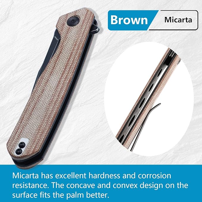 - Ergonomic Handle Grip: This multitool pocket knife features a Brown Micarta handle that is chamfered for a secure and comfortable grip. Double-sided belt clip design gives you multiple carrying options