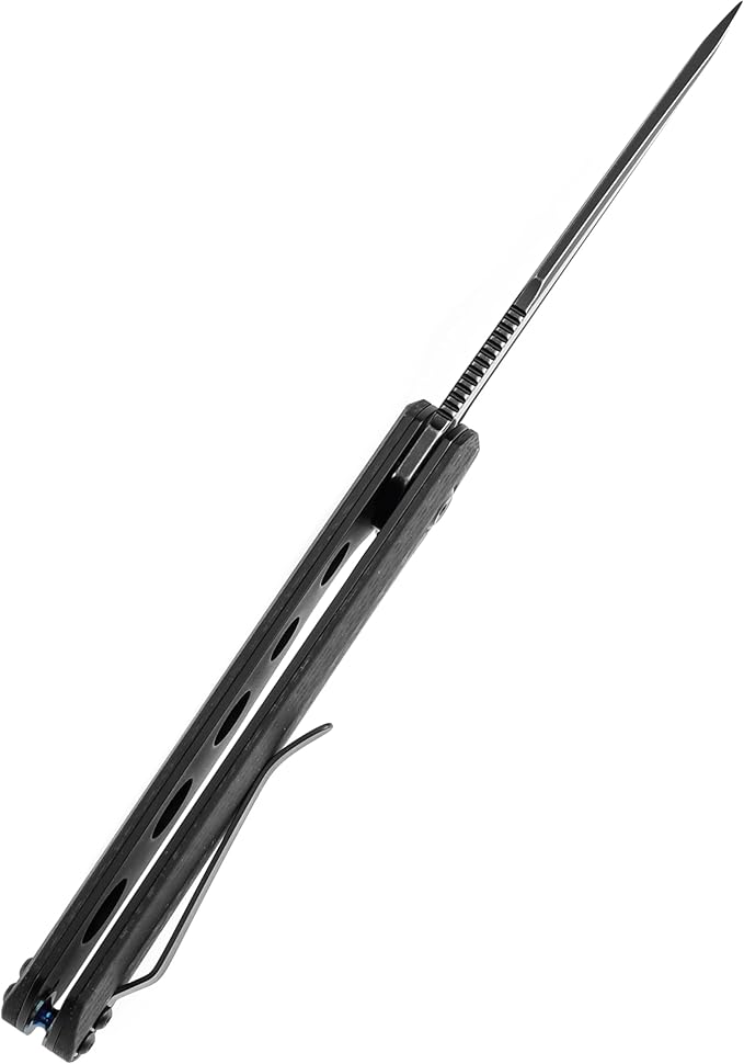 - Ergonomic Handle Grip: This multitool pocket knife features a black carbon fiber & G10 handle that is chamfered for a secure and comfortable grip. Double-sided belt clip design gives you multiple carrying options