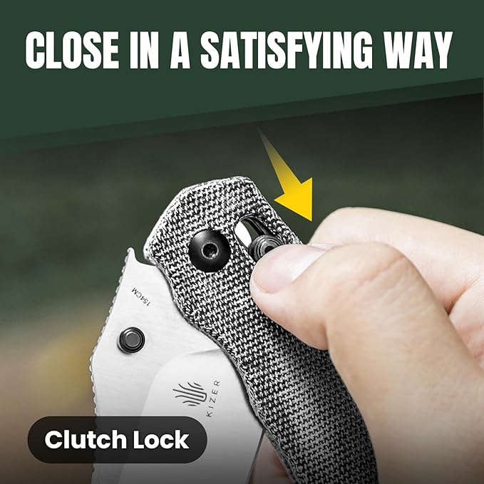 - Smooth & safe: The clutch lock design of Kizer Bulldog everyday carry knife ensures safer operation and safer blade locking. The hunting knife with deep carry reversible provides a variety of convenient carrying options.