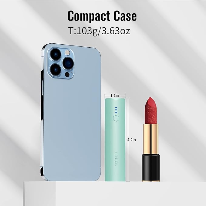 - Handy Ultra-Compact : With small and lightweight design, effortlessly slip the portable charger into your pocket, purse and bag, stylish and portable for the short travel. Fast Charging: The 5000mAh power bank fast charging for devices (up to 5V/3A), compatiable with iPhone Series, Samsung Series, Android Phone, Earphones, Small usb devices. Long life Backup Flashlight: With built-in LED flashlight, this small portable phone charger can be used as backup flashlight for emergency, Long press button 3s, it will light up the dark for you. Support Dual-port Charging: Supports both USB-A and USB-C, you can use any of your charging cables to power your devices anytime, anywhere.