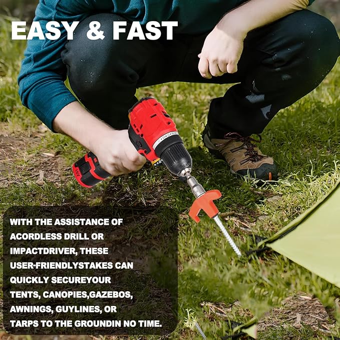 - Easy to install:Our tent stakes metal Setup faster,with the help of a cordless drill or impact driver, these easy-to-use stakes will secure your these stakes will provide you with a reliable anchor point making them a versatile and essential addition to your camping.