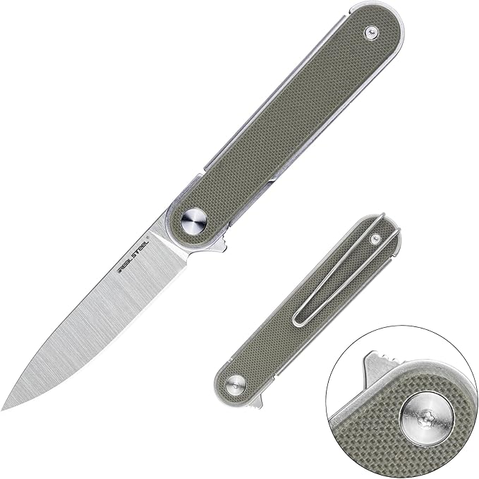 REALSTEEL IRIS Pocket Knife, Folding Knife, Flipper, Liner Lock, 2.99" 12C27 Steel Blade, Lightweight G10 Handle, 1.74oz, Deep-carry Pocket Clip, EDC Outdoor Indoor, Gifts for Men Women Camping Hiking Climbing Fishing (OD Green G10)