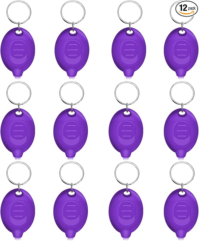 - Versatile Gift Idea: Enhance safety, create fun party atmospheres, or brighten outdoor adventures with this set of 12 UV keychain flashlights. Ideal for night events, holidays, camping, and emergencies.