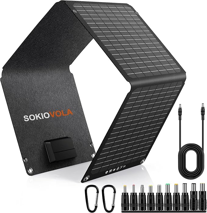 - 【Package and Support】You will receive SOKIOVOLA 30W Foldable Solar Panel Charger x1, Mountaineering buckle x3,39.37 inches DC5521 to DC 5521 Connect x1,10 Adapters x1,User's Guide x1, We also provide 12 months warranty from the date of purchase to ensure that you receive prompt support and repair services during use. Note: Any cloud cover or obstacles will affect the charging speed. If you encounter any product problems, please feel free to contact us, we will reply within 12 hours.