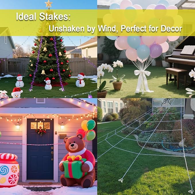- Versatile applications, anchors tents, sheds, swing sets, pet houses, trees, fences, hammocks, garden nets, outdoor decor etc. Perfect for beach trips, camping, party, wedding, festivals, and securing animals