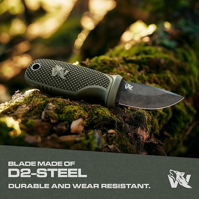 - HIGH QUALITY D2 STEEL: The neck knife with sheath fixed blade is made of robust D2 steel, which is known for its outstanding hardness and edge retention. Ideal for outdoor activities, camping and hunting, the blade remains sharp and reliable even under extreme conditions.